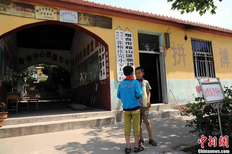 王亚平就读的张格庄中心完全小学位于村里一处较高的山坡上,学校教学条件很简朴,在通往二进校园的拱门上方悬挂着的一长排学校获得的各种奖牌,及校长室门口“拼搏进取”大字十分醒目。王娇妮摄