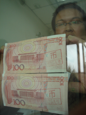两张一模一样的假币 李东朝摄