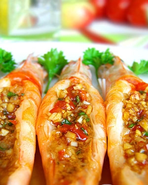 用料:鲜活大虾、葱姜蒜、红椒、生抽、香醋、糖、香油。