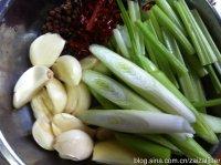 1:鸡洗干净沥干斩小块芹菜、蒜苗洗干净切段备用