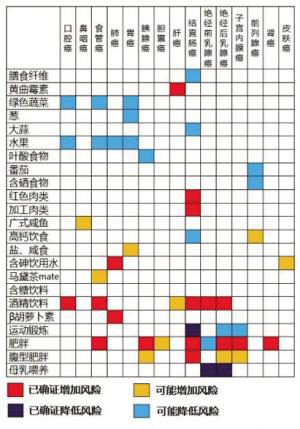 另外,图谱上显示叶酸食物可能降低胰腺癌风险,含硒食物能降低前列腺癌风险,可要是一味过量去吃富含叶酸和硒的保健品也不好。“这类食品通过日常饮食就能补充,天然的食物补充对人体更好。国外就有研究指出,虽然多吃富含叶酸的食物能降低胰腺癌风险,但服用叶酸药片却起不到预防的作用。”莫宝庆说,其实只要多吃深绿色叶菜、十字花科蔬菜(如花菜、西兰花等)、柑橘类、豆类(如扁豆、蚕豆、豌豆等)、全谷类食物等,就能摄入足够的叶酸,而含硒丰富的食物包括海鲜、蘑菇、鸡蛋、大蒜、银杏等,我们完全可以从饮食中获取。