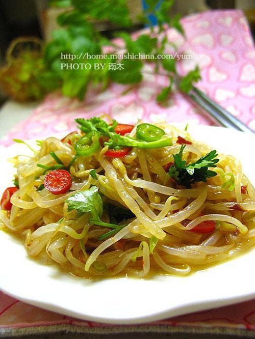 豆芽分为绿豆芽和黄豆芽,因为是发菜所以豆芽中含有丰富的水分、纤维质和维生素。如果你觉得绿豆和黄豆的营养价值已经很高了,那么豆芽在发芽过程中会将营养细化,更利于人体吸收和利用。豆芽的热量与冬瓜相差无几,但豆芽具有清肠排毒、清除血管壁上的脂肪和固醇作用,对减肥非常有利。