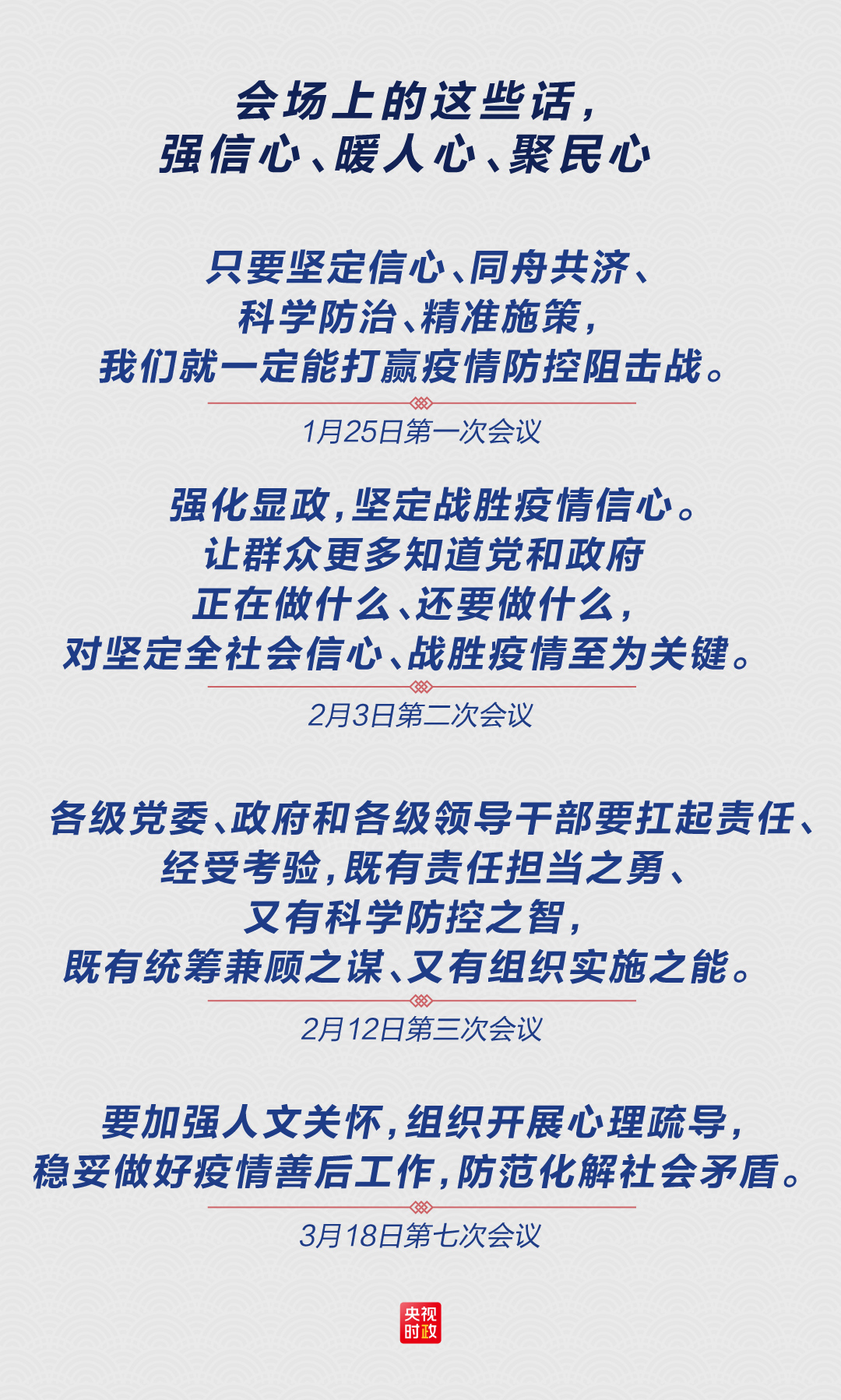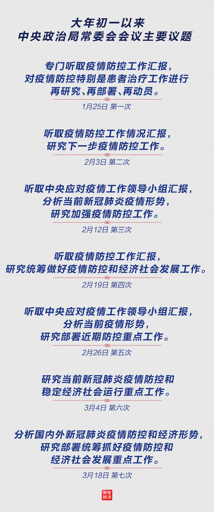 在3月18日的会议上,习近平指出,要准确把握国内外疫情防控和经济形势的阶段性变化,因时因势调整工作着力点和应对举措。这也是前后7次会议始终坚持的原则。