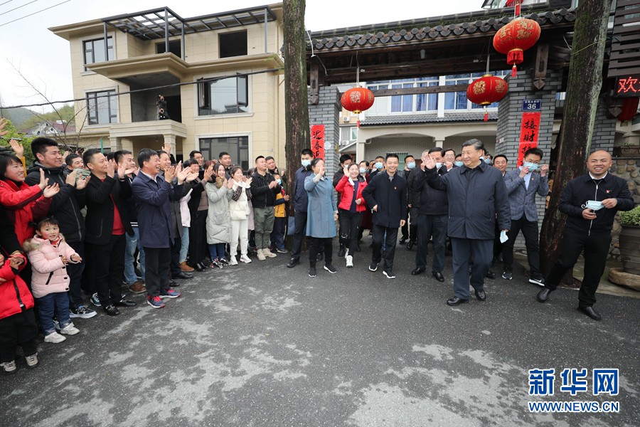 3月30日,习近平前往湖州市安吉县天荒坪镇余村村考察调研。2005年8月15日,时任浙江省委书记习近平在该村考察时首次提出“绿水青山就是金山银山”。15年来,余村坚定践行这一理念,走出了一条生态美、产业兴、百姓富的可持续发展之路,美丽乡村建设在余村变成了现实。在村党群服务中心,习近平详细了解余村发展情况,对他们发展绿色经济、带动村民增收致富的做法给予肯定。