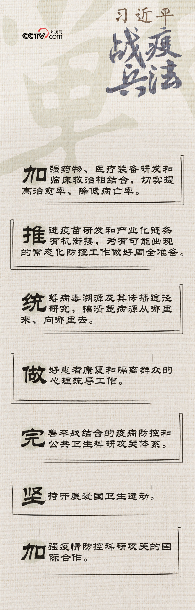 从“遭遇战”到“阻击战”,从“重中之重”到“人民战争”,从“头等大事”到“全面胜利”……观势、谋局、落子,总书记在亲自指挥这场人民战争的过程中,很多对策、措施与中国古代兵家思想高度契合。央视网《人民领袖》栏目推出系列特稿《习近平战“疫”兵法》,与您一同领悟其中精髓。