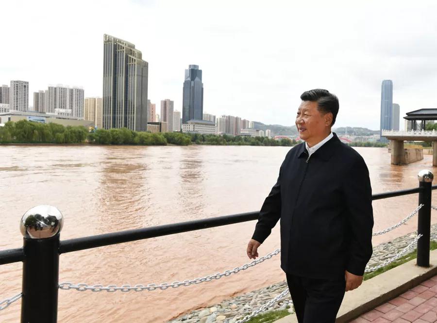 2019年8月21日下午,中共中央总书记、国家主席、中央军委主席习近平在甘肃省兰州市黄河治理兰铁泵站项目点了解黄河治理和保护、堤坝加固防洪工程建设等情况。新华社记者 谢环驰/ 摄
