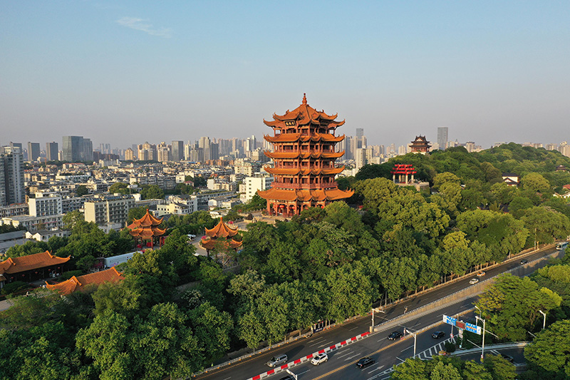 2020年4月28日拍摄的武汉黄鹤楼景区。
