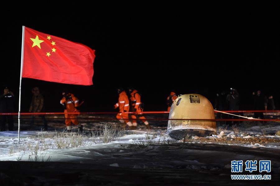 2020年12月17日凌晨,嫦娥五号返回器携带月球样品,采用半弹道跳跃方式再入返回,在内蒙古四子王旗预定区域安全着陆。新华社记者 连振 摄