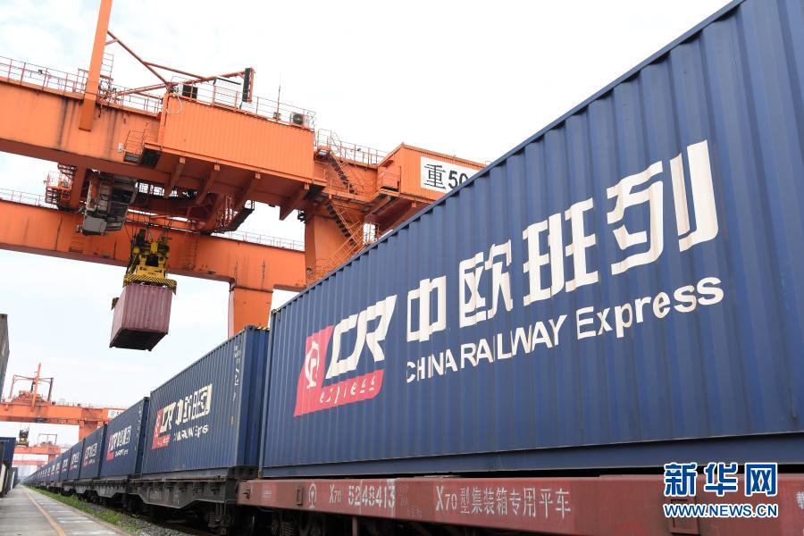 汽笛轰鸣,一列装满了电脑、汽车零配件等物品的中欧班列缓缓驶出站台,前往一万多公里外的德国杜伊斯堡。