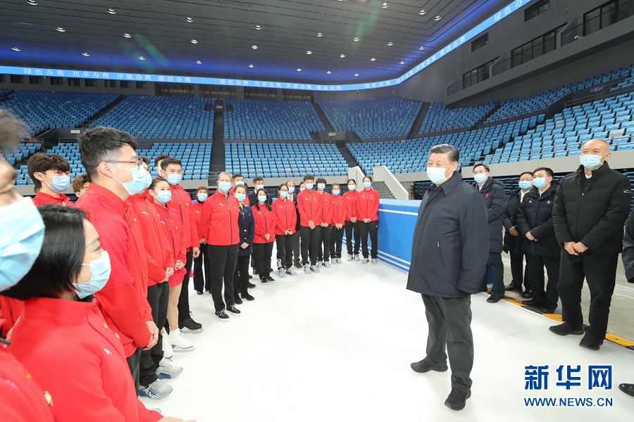 1月18日至20日,中共中央总书记、国家主席、中央军委主席习近平在北京、河北考察,并主持召开北京2022年冬奥会和冬残奥会筹办工作汇报会。这是18日上午,习近平在位于北京市海淀区的首都体育馆,同国家花样滑冰队和短道速滑队运动员、教练员等亲切交流。新华社记者 鞠鹏 摄