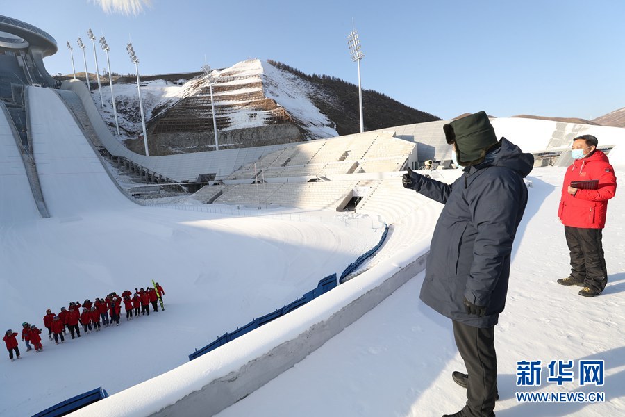 在国家冬季两项中心看台,习近平观看了冬季两项越野滑雪和射击运动员接力训练情况,并看望慰问国家冬季两项、跳台滑雪队运动员、教练员和张家口赛区运行保障团队、建设者代表。习近平亲切地对大家说,我这次来考察北京冬奥会、冬残奥会筹办情况,也是在牛年春节前来看望大家。大家都在为办好一届成功的冬奥盛会而努力,运动员在刻苦训练,建设单位和建设者、保障团队兢兢业业,成功打造了一批世界一流的精品工程,大家的奋斗精神、奉献精神令人感奋。习近平强调,北京冬奥会、冬残奥会所有场馆建设提前一年完成,我国很多冰雪项目在两年多时间里实现从无到有,有的项目达到了世界先进水平,充分体现了党的领导和举国体制、集中力量办大事的制度优势。