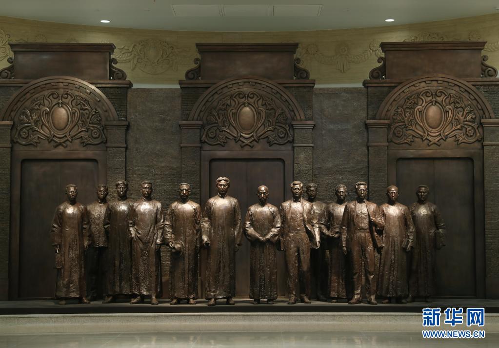 6月1日拍摄的中共一大纪念馆内的一大代表群体铜像。新华社记者 刘颖 摄