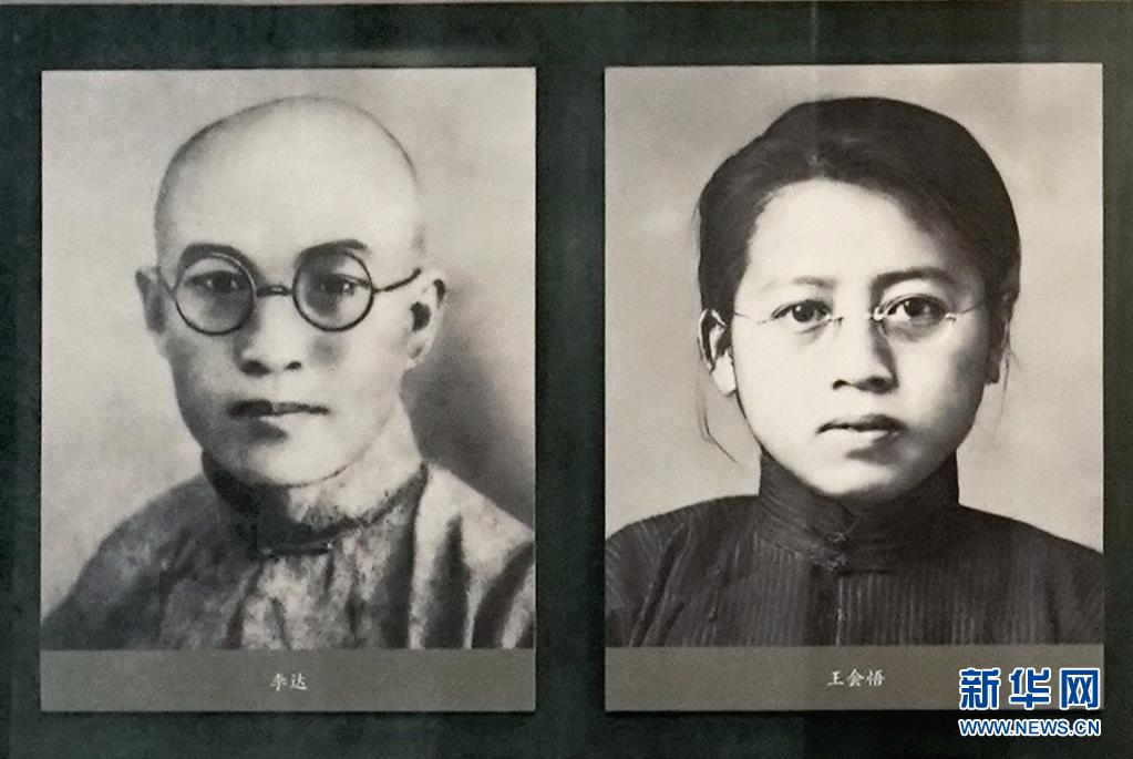 中共二大会址纪念馆展示的李达、王会悟夫妇的照片。新华社发