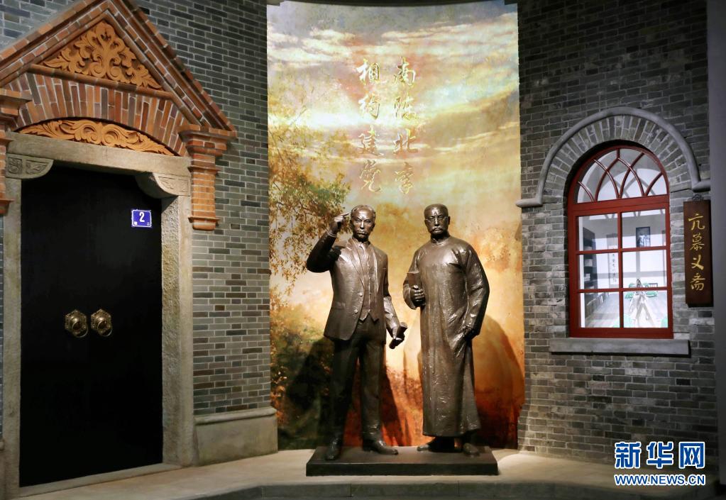 6月1日拍摄的中共一大纪念馆内的“南陈北李,相约建党”主题雕塑。新华社记者 刘颖 摄