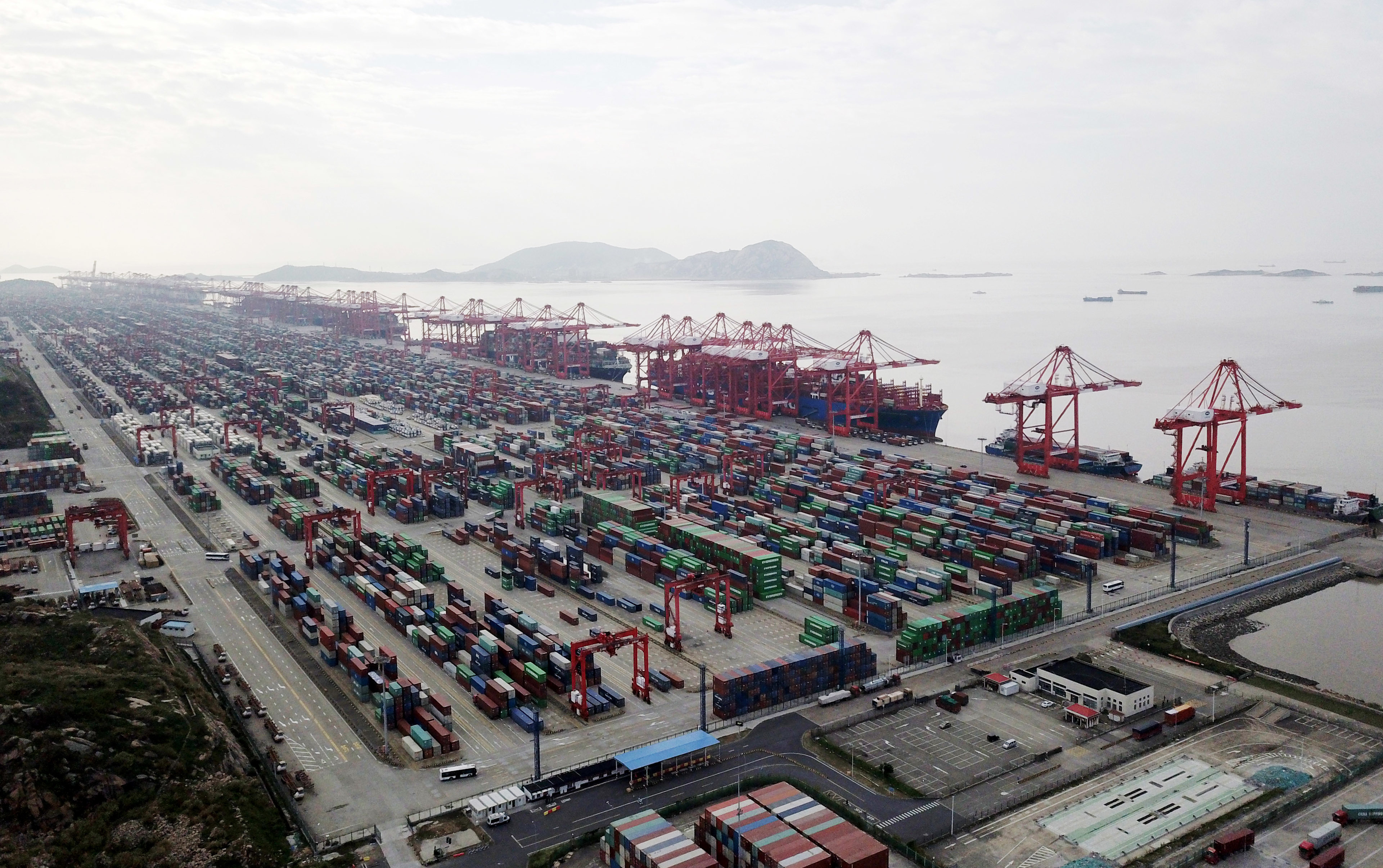 11月3日拍摄的上海洋山港集装箱码头(无人机照片)。新华社记者 丁汀 摄