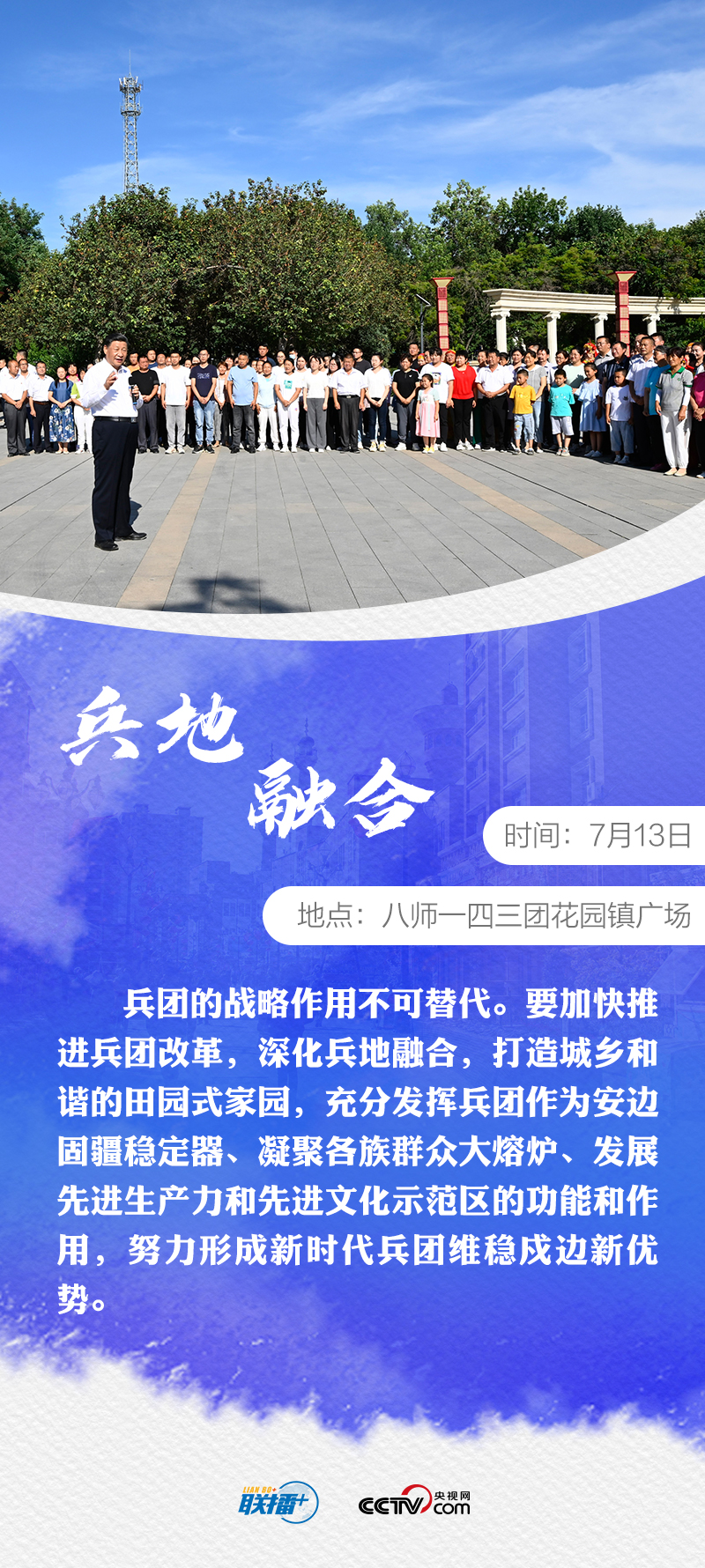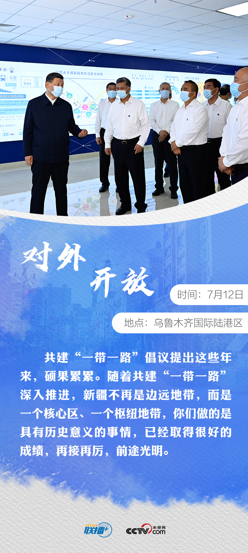 7月12日至15日,习近平总书记时隔八年再次考察新疆。他先后来到乌鲁木齐、石河子、吐鲁番等地,深入学校、国际陆港区、社区、博物馆、农村和新疆生产建设兵团等进行调研。