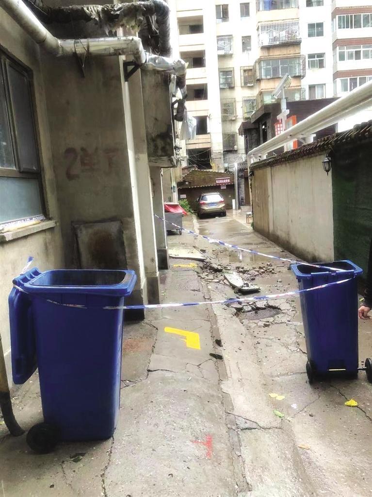 墙体脱落处拉起警戒线