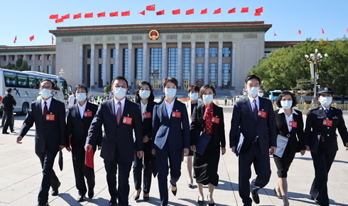 豪情满怀向未来 甘肃代表团代表步出人民大会堂