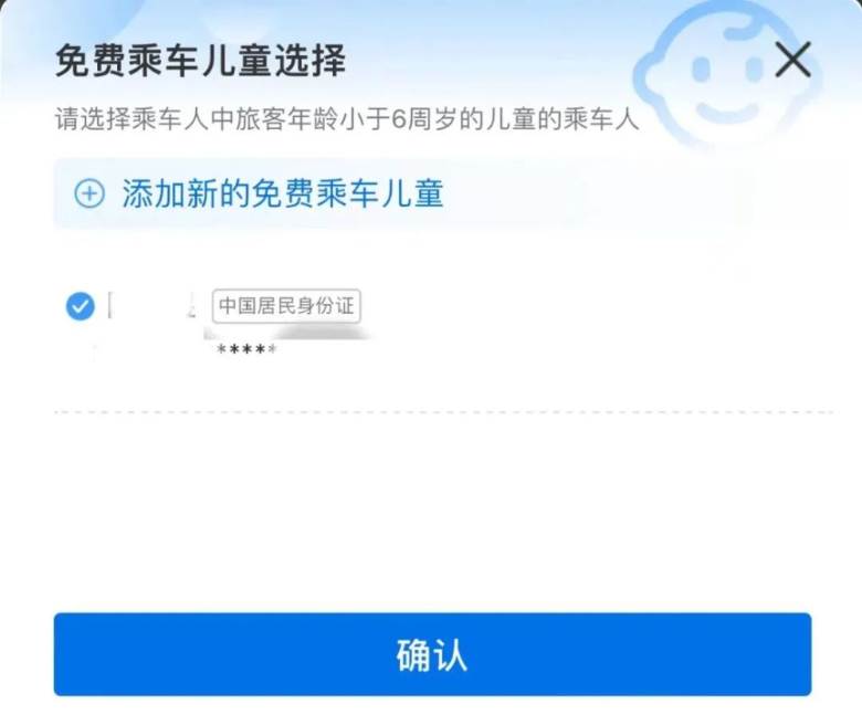 携带免费乘车儿童时需提前申明